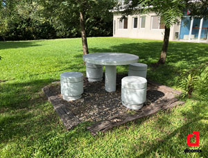 Mobiliario de hormigón premoldeado para espacios públicos modernos.